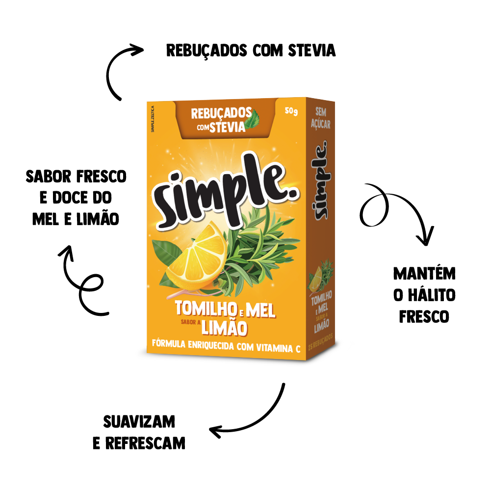 Os Rebuçados Simple são uma deliciosa mistura de extratos de frutos e plantas. Um momento doce e acolhedor, sem adição de açúcar, numa maravilhosa conjugação de sabores.